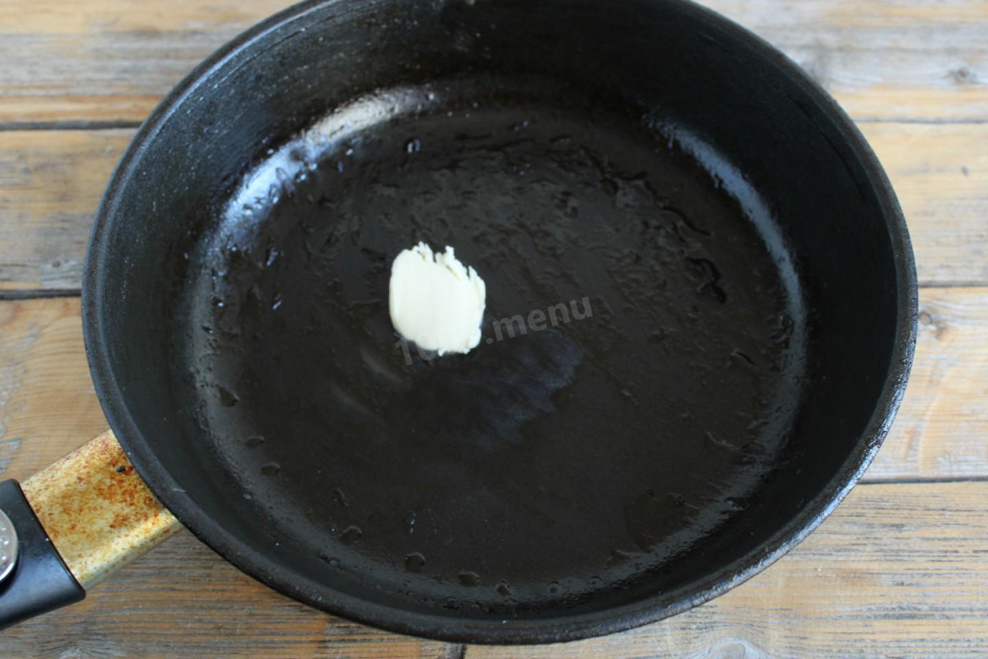 Umieść kawałek masła na patelni, rozpuść go. Jeśli sos jest gotowany w dużych ilościach, wygodniej jest gotować go w rondlu lub rondlu, w tym celu lepiej rozpuścić wstępnie masło w łaźni wodnej lub w kuchence mikrofalowej, a następnie wlać do rondla.