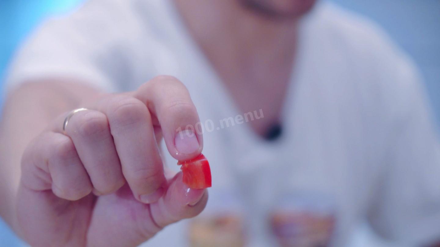 Pokrój jednego pomidora w kostkę o określonej grubości.