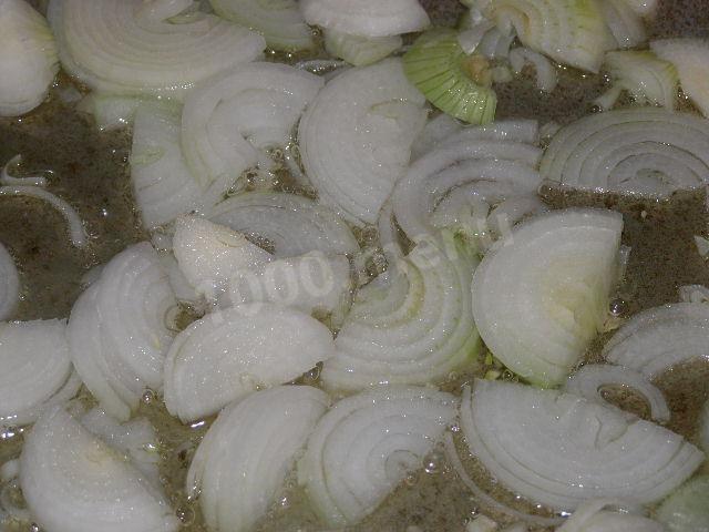 cebulę obrać, pokroić w cienkie plasterki i krótko podsmażyć na patelni nadającej się do pieczenia. Ryby należy oczyścić z wnętrzności, przetworzyć i umyć. Podziel go na porcje i natrzyj solą. Pokrój małe bulwy ziemniaka w plasterki i usmaż na oleju roślinnym.