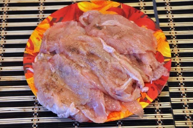 Ubij mięso, pieprz, sól, posyp przyprawami do drobiu lub mięsa.