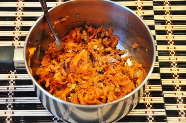 Podsmaż cebulę i marchewkę z roślinami. masłem 5 min, mieszając