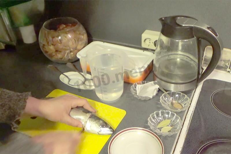 Rozmrozić makrelę, wypatroszyć i umyć. Pamiętaj, aby usunąć czarny film z brzucha - daje gorycz. Usuń także ogon i płetwy.