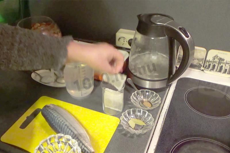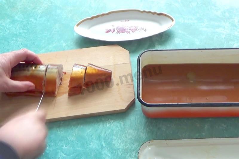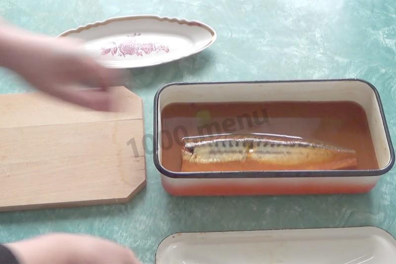 Przykryj ciężarkiem, aby makrela nie unosiła się i pozostaw na 8 godzin w pokoju.