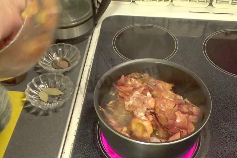 Umyj skórki cebuli i dodaj do garnka. Jak się zagotuje-gotuj przez 15 minut.