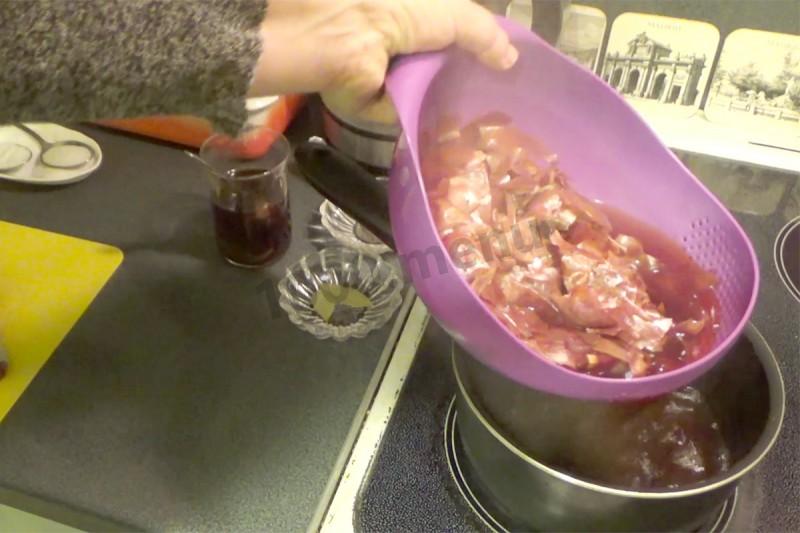Odcedź wywar z cebuli i wróć do kuchenki.