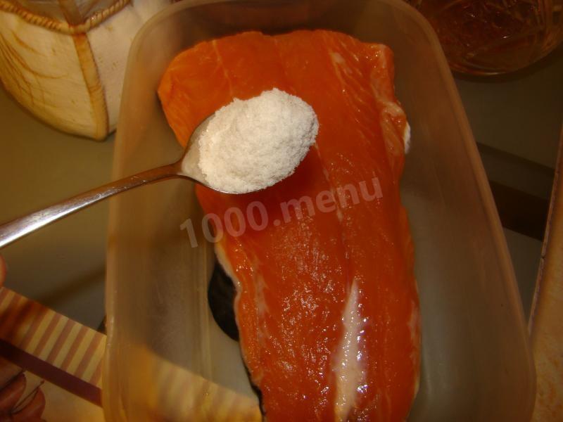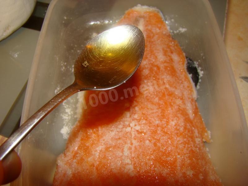wymieszaj cukier i sól. Zetrzyj pstrąga tą mieszanką.
