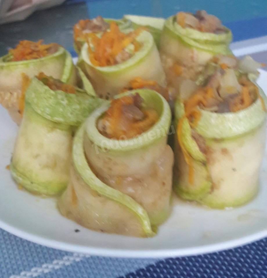 Krok 6. Opiekana cukinia staje się bardzo miękka i giętka. Należy je ponownie wysuszyć papierowymi serwetkami, ale tym razem, aby pozbyć się tłuszczu. Na każdy pasek cukinii połóż trochę nadzienia i rozprowadź go prawie na całej długości, pozostawiając 2 cm.
