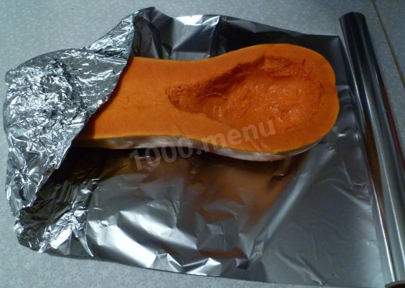 owinąć umytą dynię folią i włożyć do piekarnika. Trzymaj, aż dynia będzie miękka.