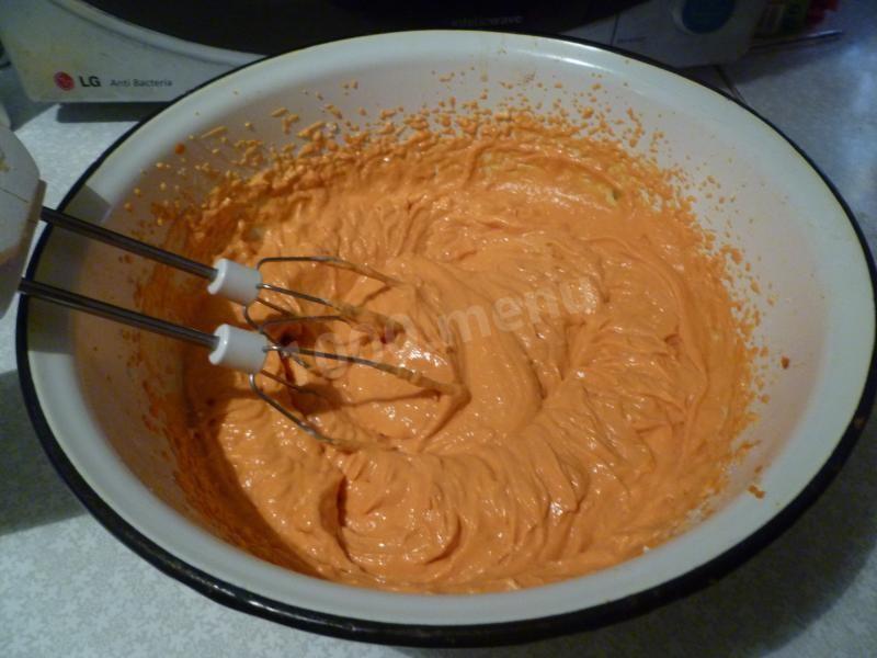 dodaj żelatynę do mieszanki dyni, mieszając. Włóż śmietanę, ubij mikserem na niskich obrotach.