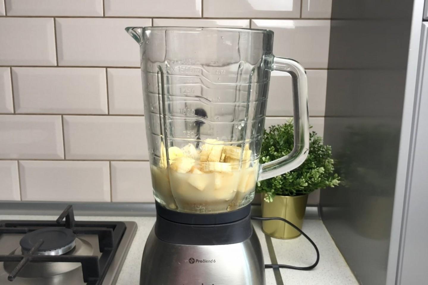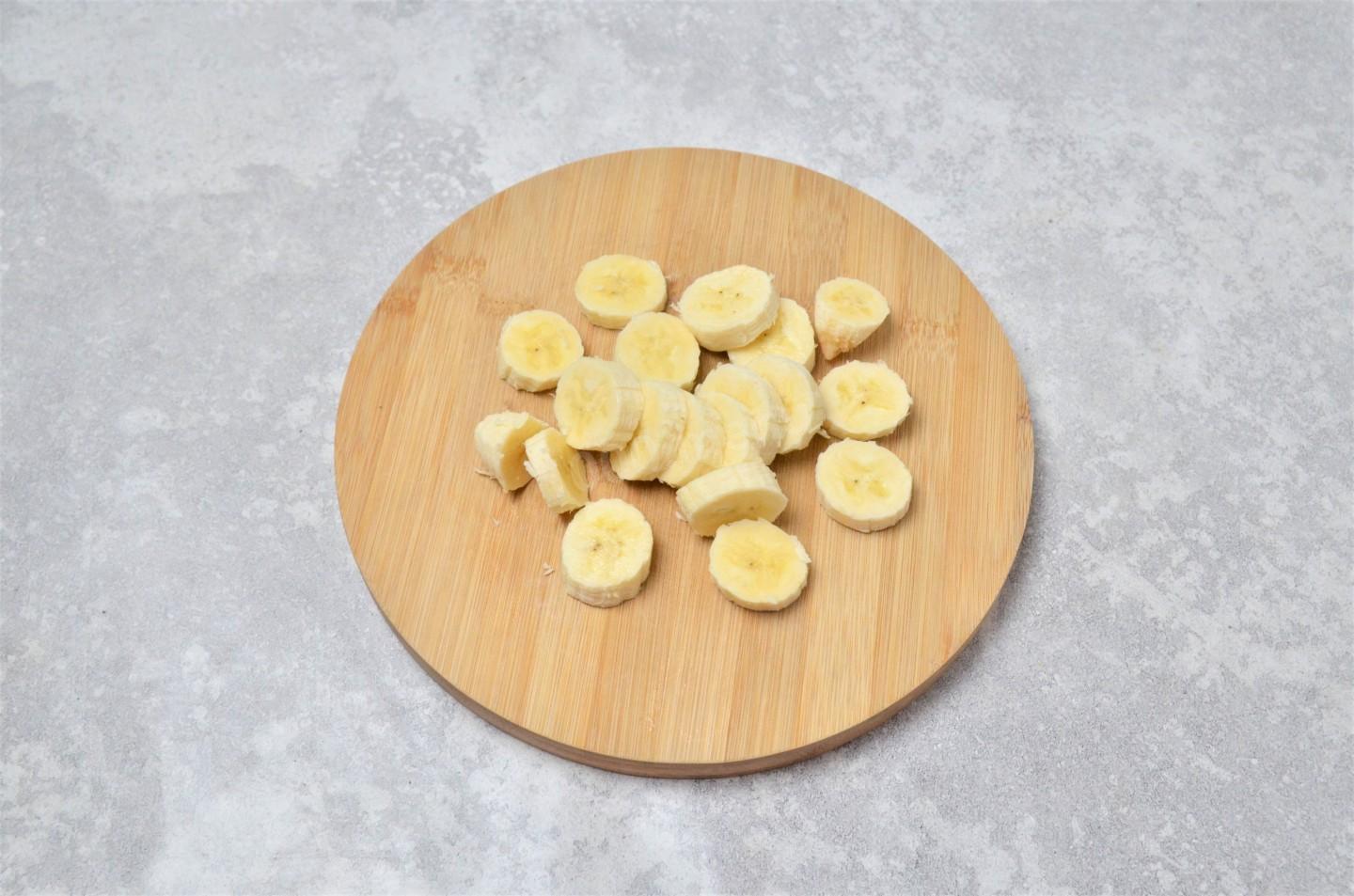 Pamiętaj, aby umyć banany, osuszyć, obrać i pokroić w plasterki. Wybierz w pełni dojrzałe owoce do smoothie, to banan nadaje napojowi jedwabistość i słodycz.