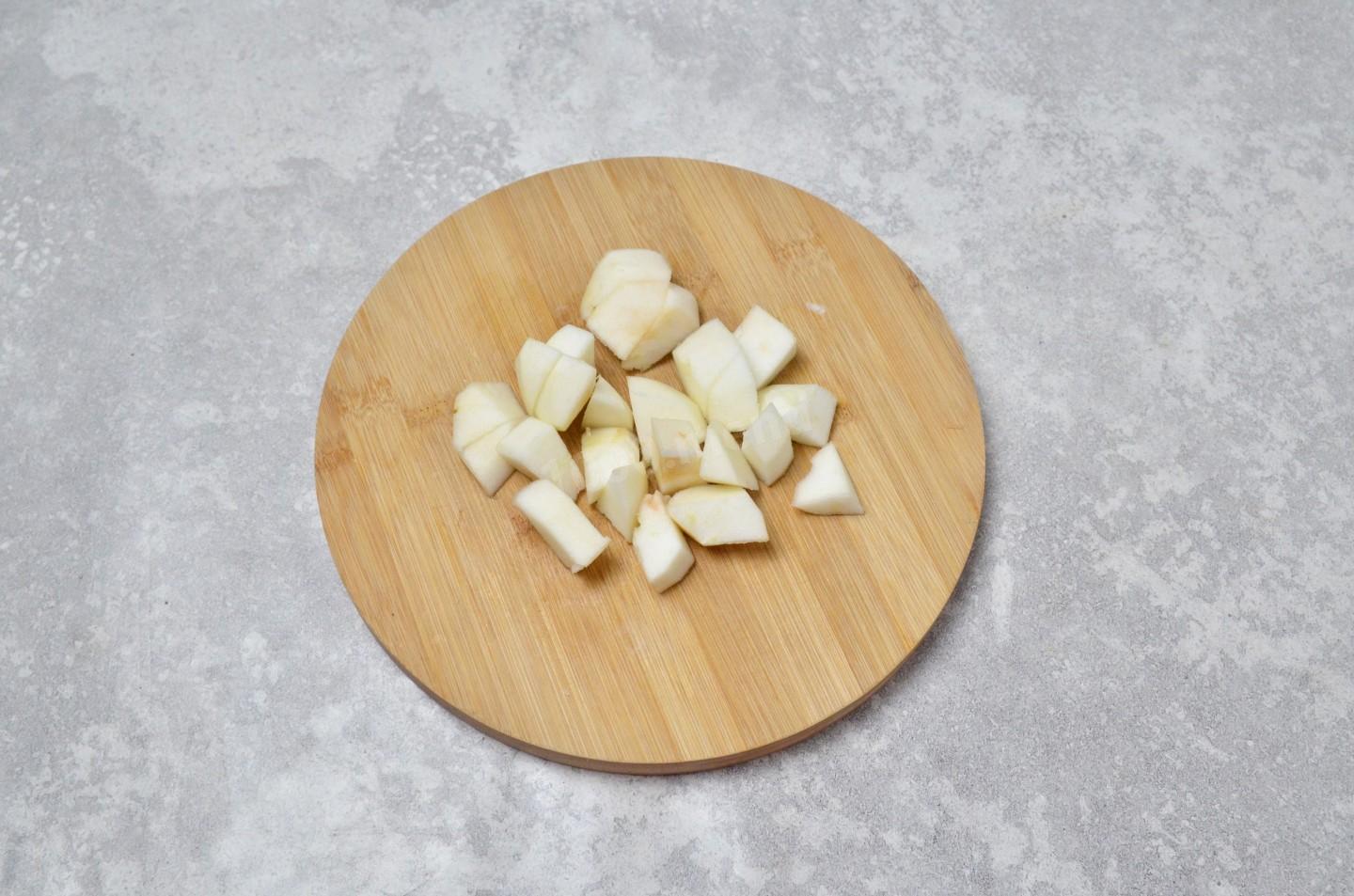 Umyj Jabłko, osusz i pokrój na ćwiartki. Usuń rdzeń z nasionami, odetnij skórę. Pokrój miąższ na małe kawałki.