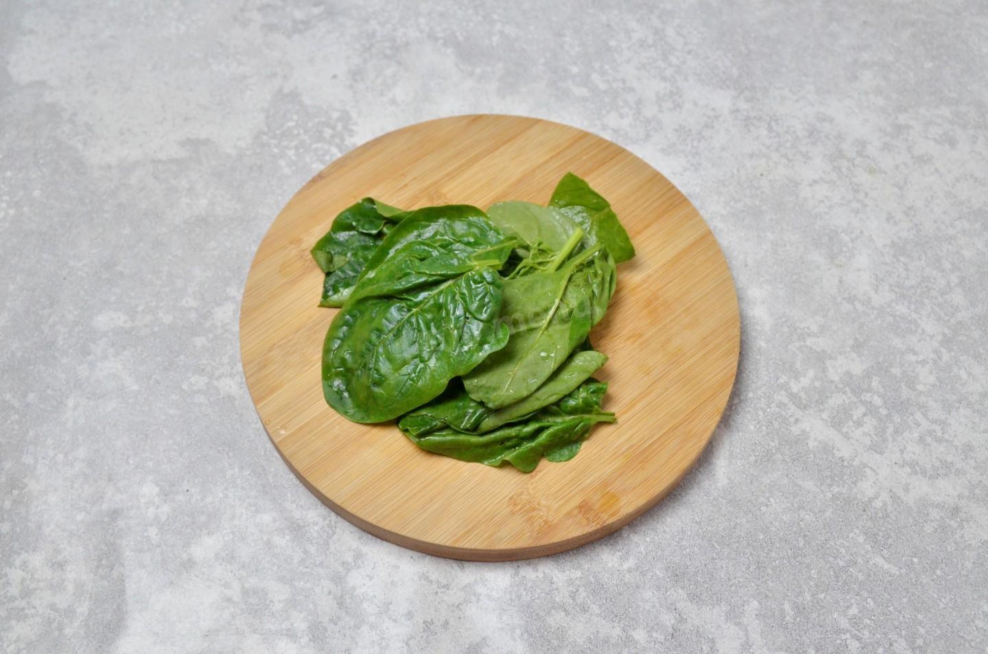 Szpinak dobrze spłucz pod bieżącą wodą i osusz ręcznikami papierowymi. Usuń zbyt twarde łodygi.