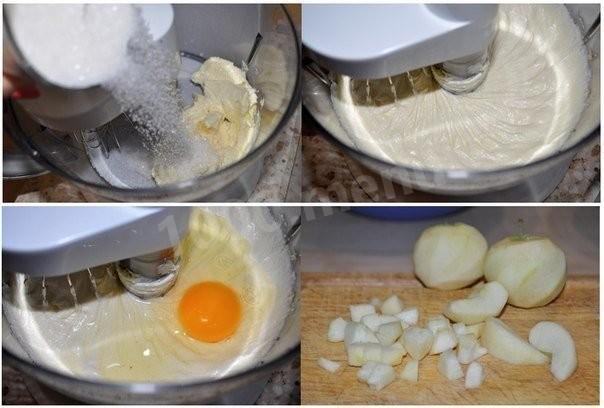 2. Wyjmij masło z lodówki i pozwól mu się rozgrzać, zmięknąć. Umieść masło, połowę normy cukru w misce miksera i ubij ze średnią prędkością-cukier powoli się rozpuszcza, masło staje się białe i staje się bardziej puszyste. Dodaję drugą połowę cukru i jedno jajko, nadal ubijam ze średnią prędkością, a następnie kładę drugie jajko, nie przestając bić. Gdy cukier się rozpuści, a mieszanina stanie się delikatna, lekka, kremowa – gotowe.