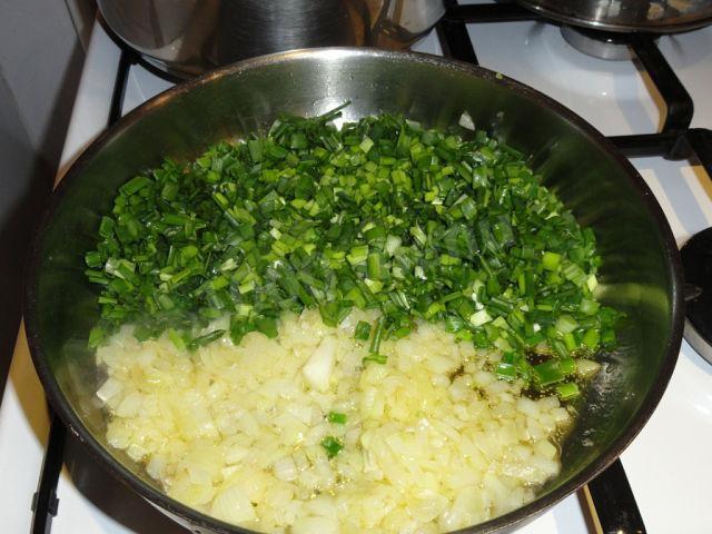 podsmaż cebulę na złoty kolor, dodaj zioła, smaż przez dwie minuty i zdejmij z ognia i ostudź.