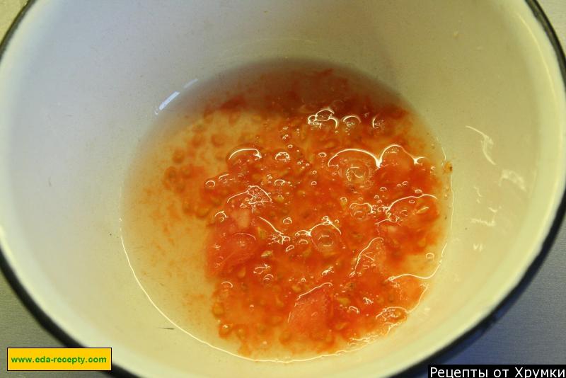 wyciskamy sok z pomidora i odkładamy miąższ.