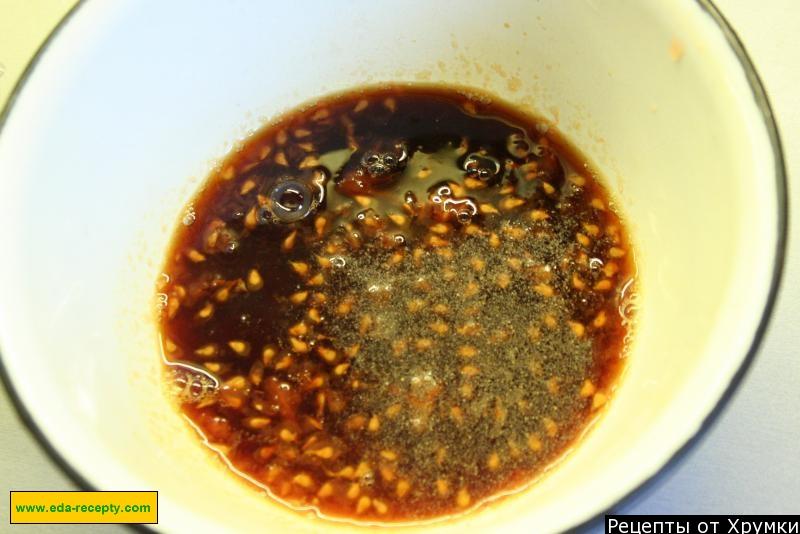 wymieszaj powstały sok z sosem sojowym, pieprzem.