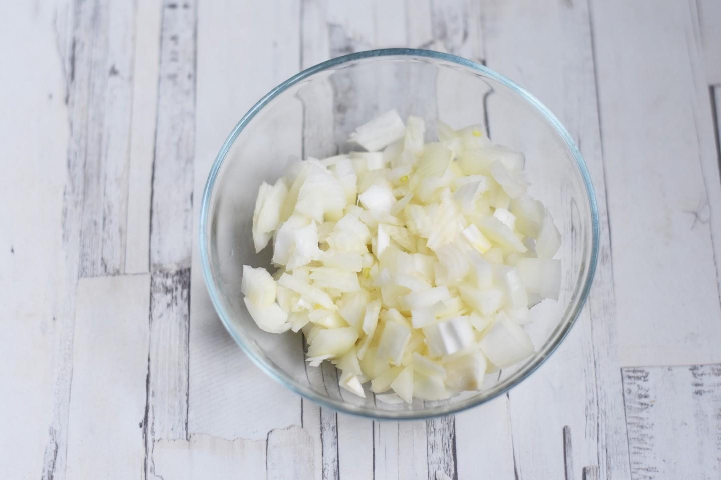 Pokrój cebulę w drobną kostkę. Jeśli ty lub Twoje dziecko nie lubicie cebuli, możecie po prostu jej nie dodawać.