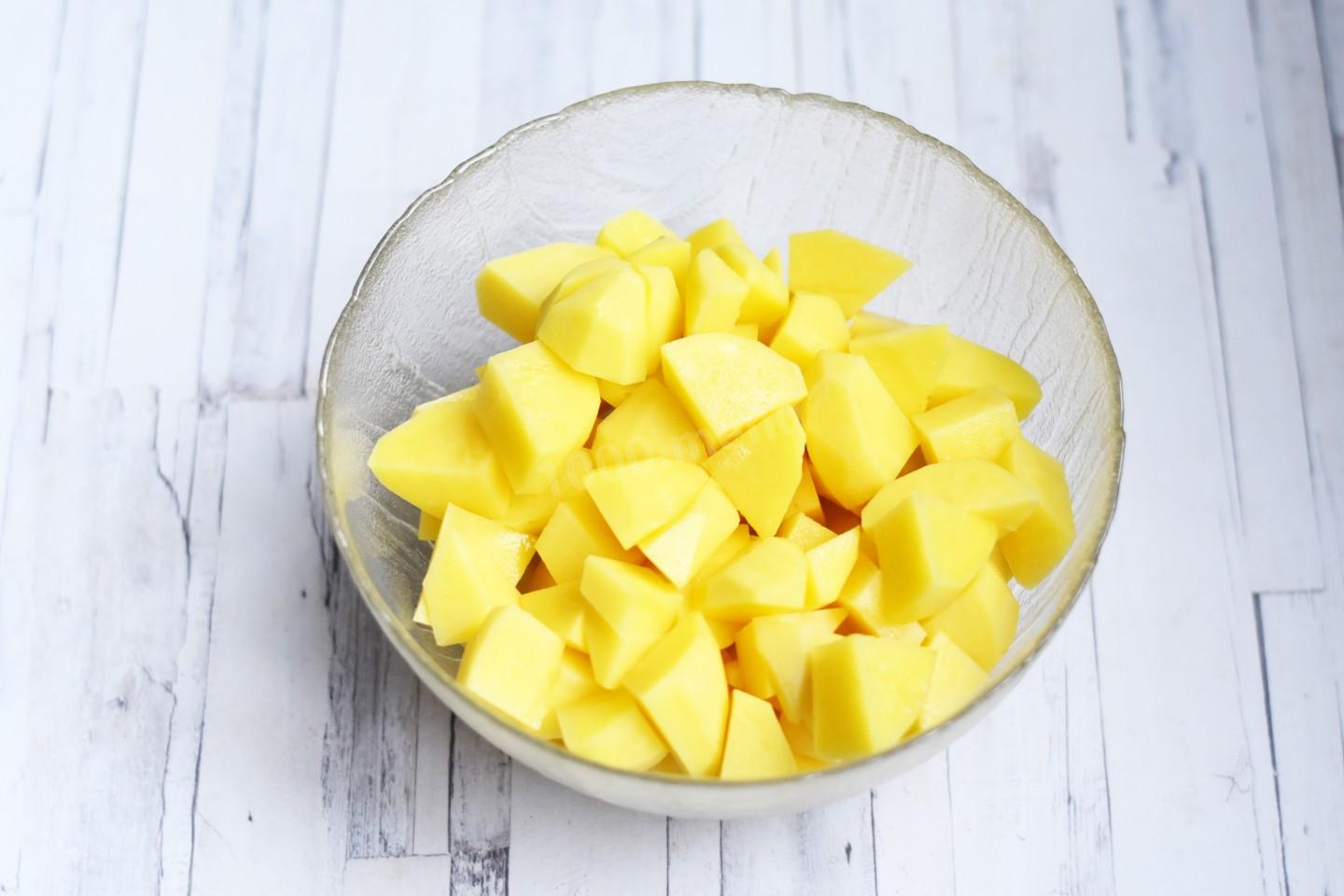 Ziemniaki obrać i pokroić w drobną kostkę.