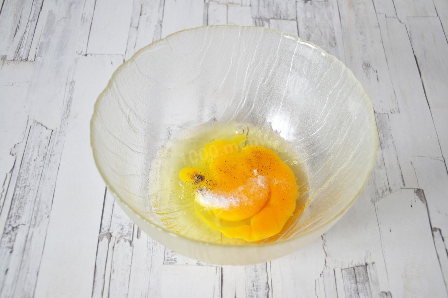 W misce ubij jajka solą i pieprzem, aż będą gładkie.