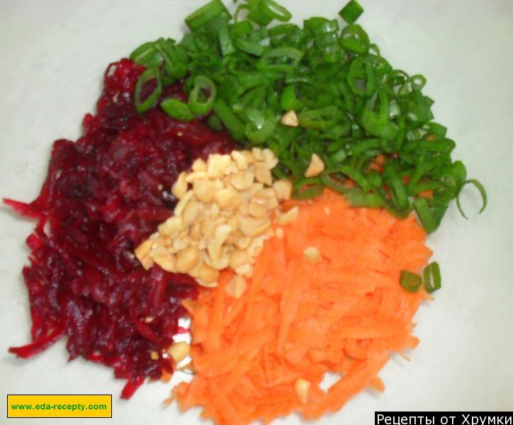 generalnie wolę jeść i gotować sałatki warzywne, ponieważ są zdrowe i smaczne. Znam wiele przepisów kulinarnych na to jedzenie. Szczególną miłością płonę do różnych roślin okopowych. Teraz chciałbym podzielić się przepisem na sałatkę ze świeżej marchwi i buraków. Na początek myjemy marchewki i buraki pod bieżącą wodą, obieramy. Teraz za pomocą robota kuchennego lub grubej tarki pocieramy warzywa. Następnie przenosimy przygotowane warzywa korzeniowe do salaterki, dodajemy do nich posiekaną zieloną cebulę i mielone orzechy. Teraz wymieszaj miód, jogurt, imbir i chili. Wszystko mieszamy. Teraz bierzemy formy bez dna, kładziemy je na porcjach, wypełniamy sałatką i usuwamy formę. Rezultatem jest sałatka uformowana w okrąg, trójkąt lub inny kształt, jaki masz pod ręką. Teraz udekoruj sałatkę gałązką zieleni-pietruszki lub koperku.