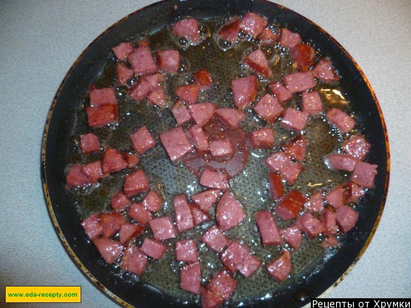 tego kulinarnego przepisu na jajecznicę z kiełbasą nauczyłem się od mojej mamy, często robi to nam na śniadanie. Okazuje się bardzo smaczny. Jest przygotowywany bardzo prosto i szybko. To jedzenie jest preferowane na śniadanie! Przede wszystkim konieczne jest podgrzanie margaryny lub tłuszczu do gotowania na małej patelni. Kiełbasę należy pokroić w drobną kostkę i smażyć na tłuszczu, ciągle mieszając, aby kiełbasa się nie przypaliła. Po usmażeniu kiełbasy należy ostrożnie rozbić dwa jajka na wierzchu kiełbasy na patelni, a następnie zmniejszyć ciepło do niskiego. Sól, a także poczekaj, aż całe białko z jajek się zwinie. Żółtka można pozostawić lekko surowe. Ugotowane jajecznicę z kiełbasą należy zdjąć z ognia łopatką na talerze, posypać natką pietruszki lub koperkiem, a także cebulą. Jajecznica z kiełbasą jest gotowa! Jajecznica to danie kuchni europejskiej. Jest to proste danie i szybkie w przygotowaniu, a nawet niezbyt doświadczony kucharz może to zrobić. Smacznego! Jedz dla zdrowia! Miłego appatit!