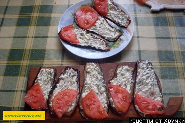 teraz o odmianach. Bakłażany są czasami smażone w cieście, co z pewnością zmienia wygląd potrawy, ponieważ krawędź języczka przestaje mieć charakterystyczny czarny kolor. Czasami masa do smarowania zawiera pastę z mielonych orzechów włoskich i czosnku lub majonez, czosnek i ser topiony lub twardy. Możesz dodać pierścień papryki do pomidora.