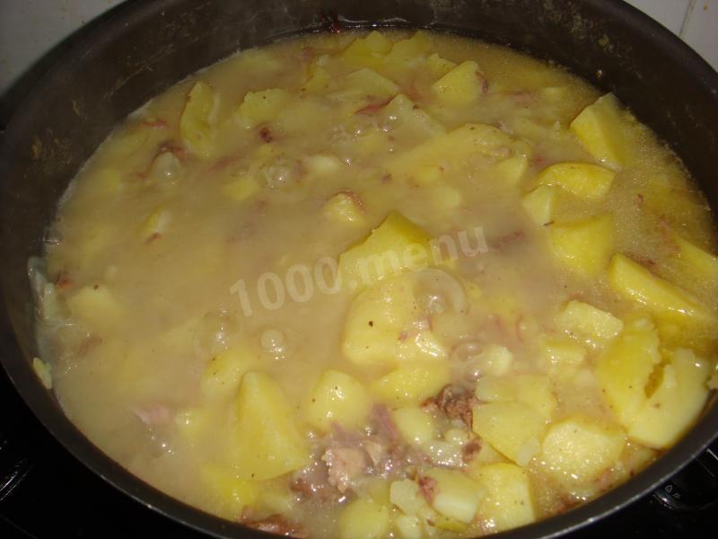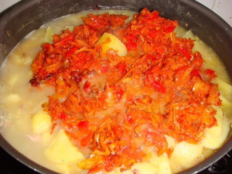 wody należy pozostawić tyle, aby ziemniaki były na powierzchni, wtedy sos będzie gęsty. Jeśli chcesz być gorętszy, musisz dodać więcej wody. Wtedy otrzymasz gęstą zupę ziemniaczaną.