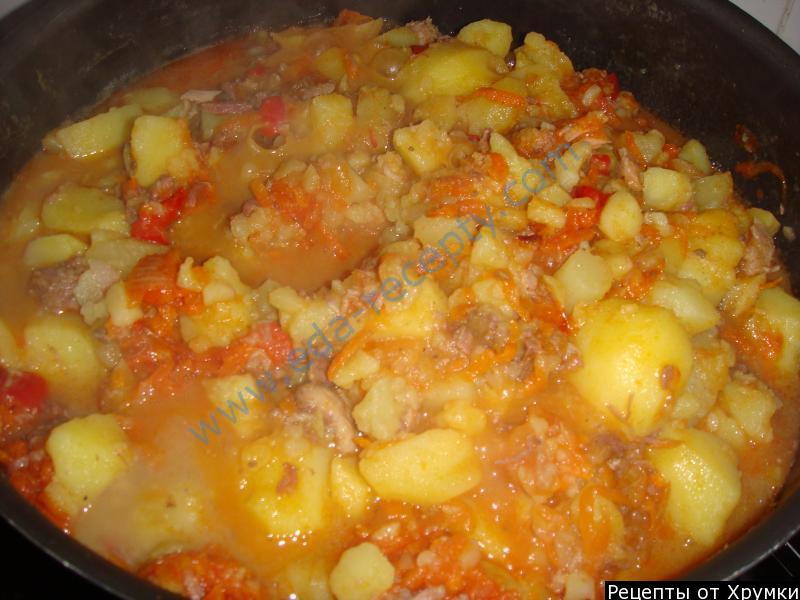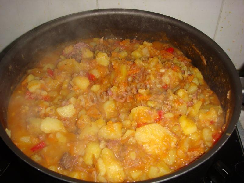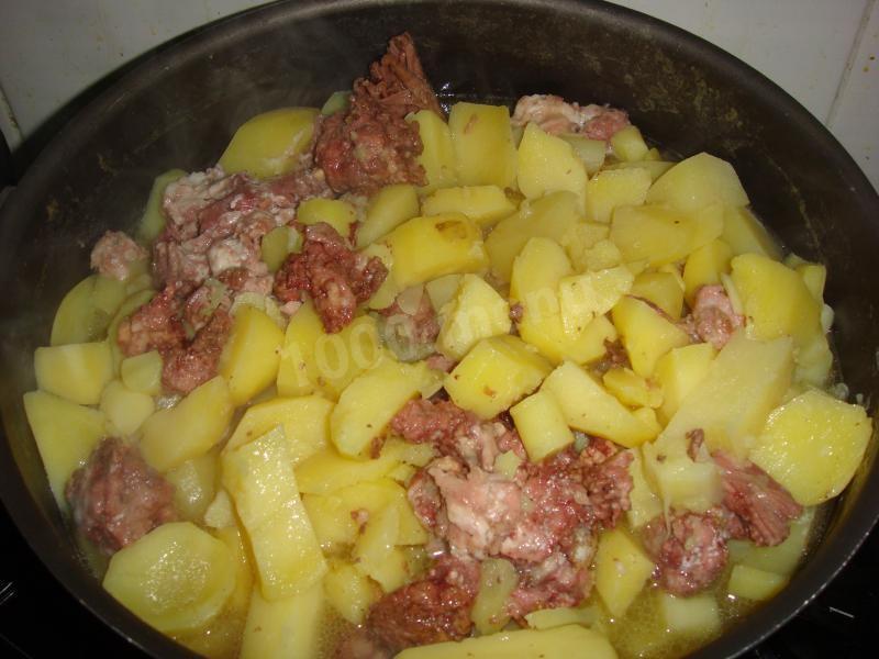 gdy tylko woda się zagotuje i spuścisz pianę, włóż gulasz i ugniataj.