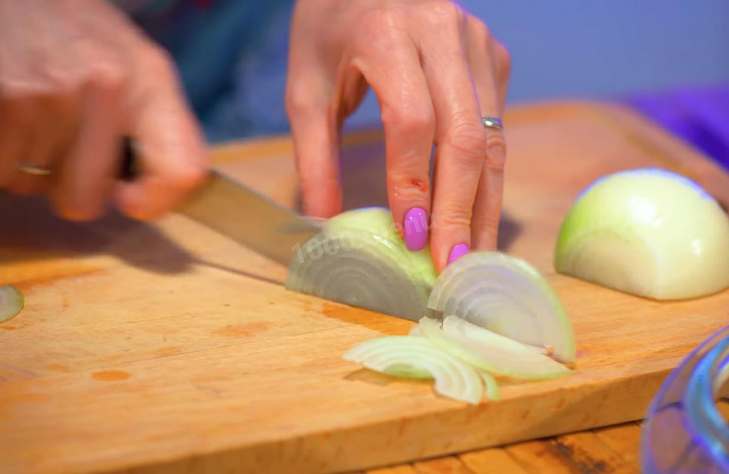 Pokrój jeden kilogram cebuli w dowolne półpierścienie.