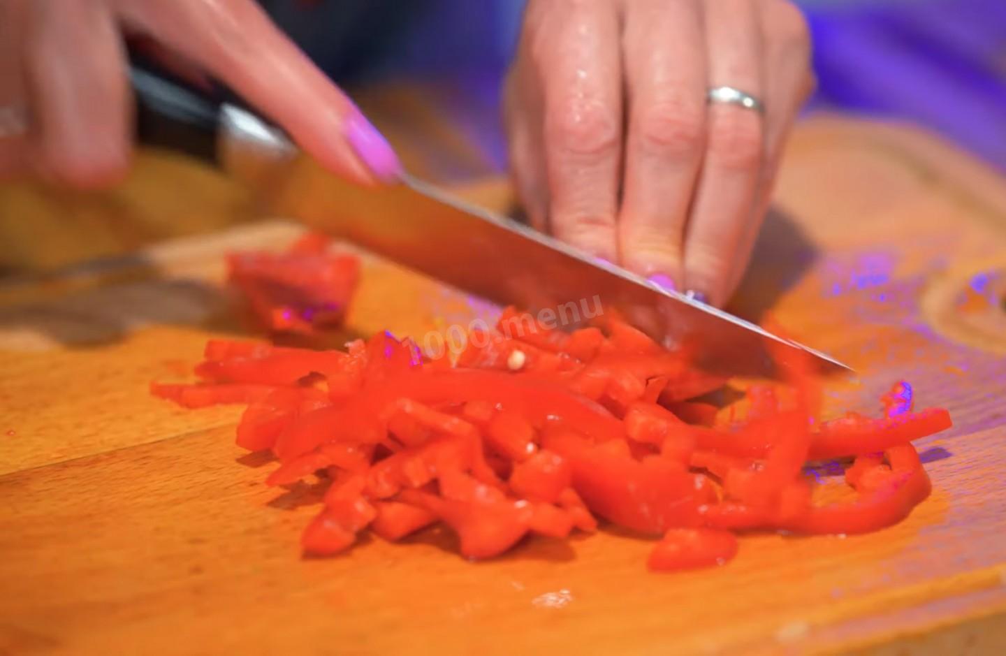 Włóż posiekaną paprykę do wspólnego rondla i dobrze wymieszaj wszystkie składniki, a następnie zamknij rondel pokrywką i nie zapominając o mieszaniu, zagotuj warzywa w rondlu.