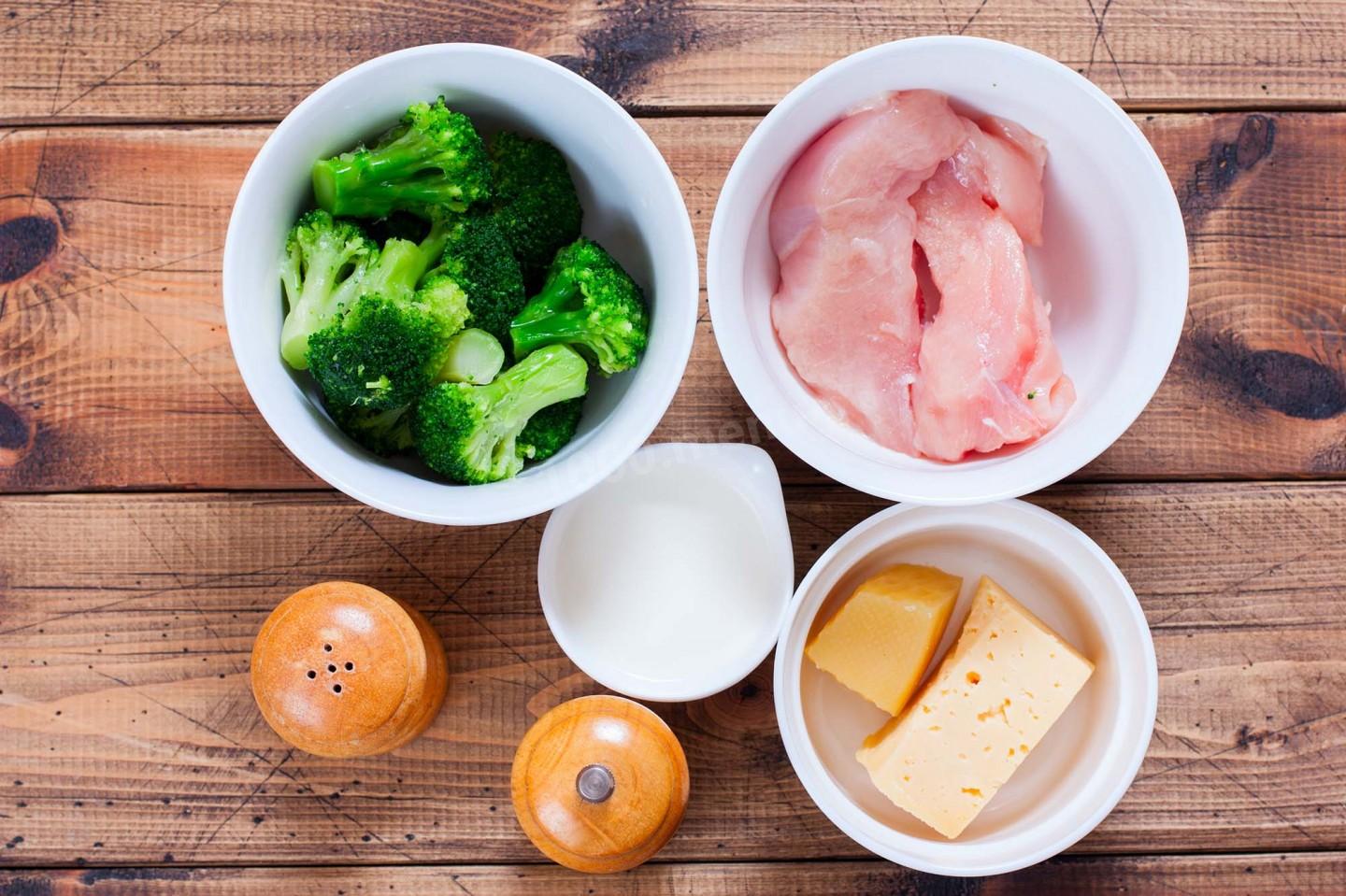 Przygotuj produkty według listy. Lepiej jest wziąć świeże brokuły, jeśli nie jest to możliwe, możesz wziąć zamrożone, nie można go rozmrozić, biorę mrożoną kapustę. Lepiej też wziąć świeży filet z piersi. Ser jest odpowiedni dla każdego, który jest dostępny w domu lub jak, biorę półstały. Śmietana 10% tłuszczu, suche przyprawy można wziąć do smaku. Przygotuj naczynie do pieczenia w piekarniku.