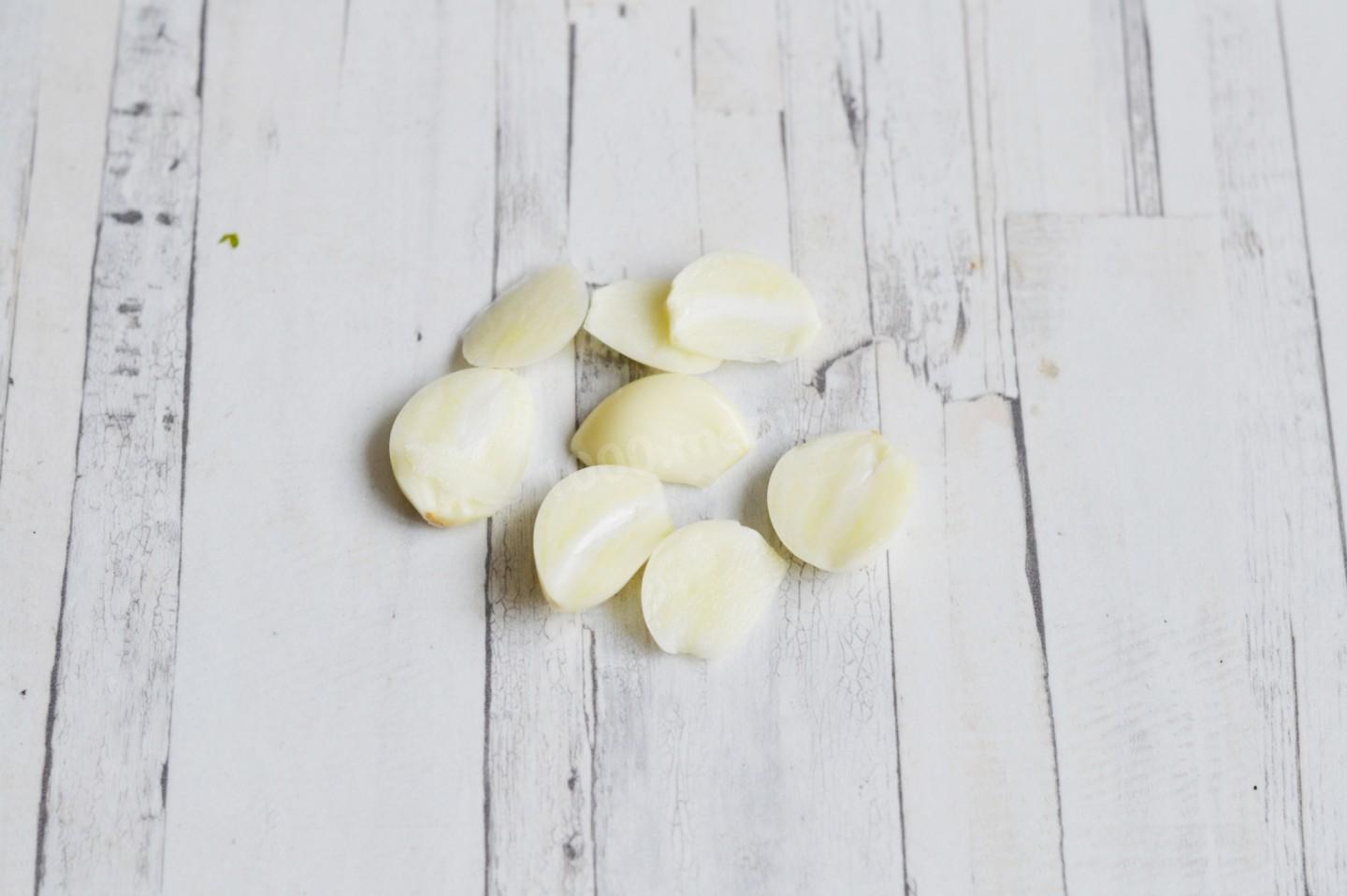 Obierz czosnek i pokrój w płatki.