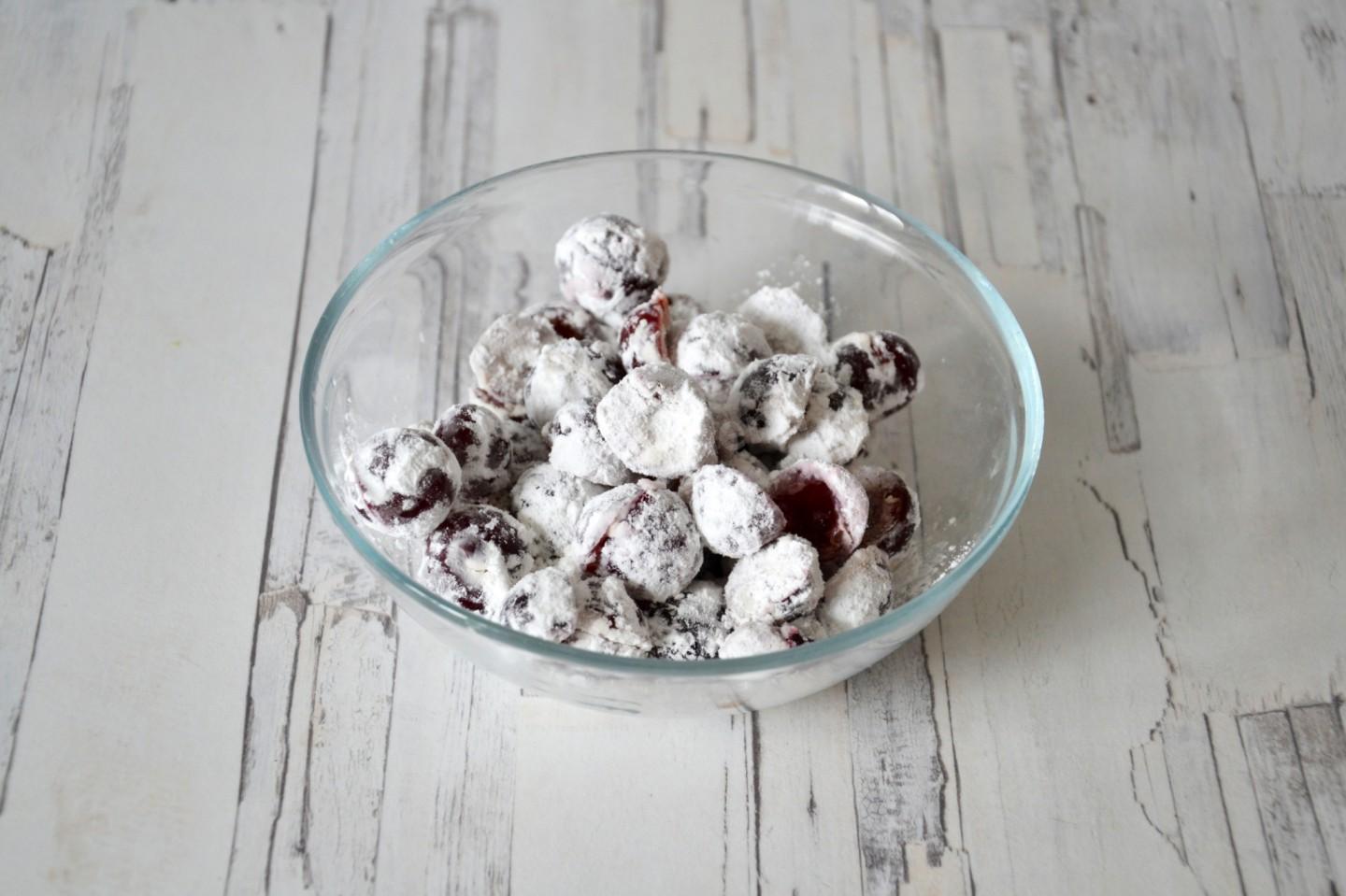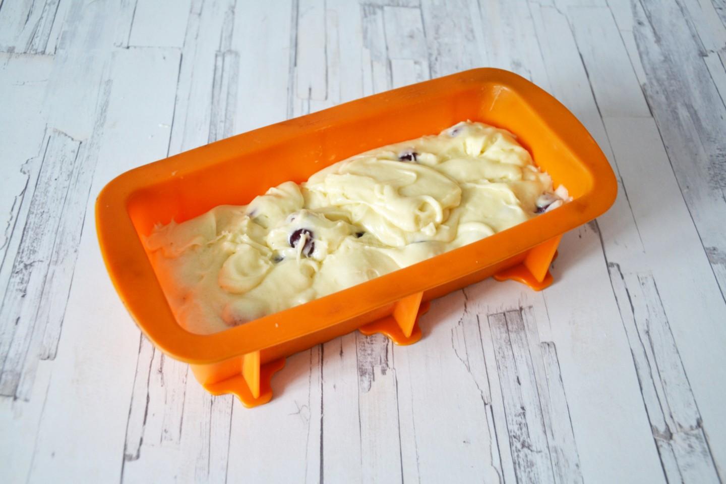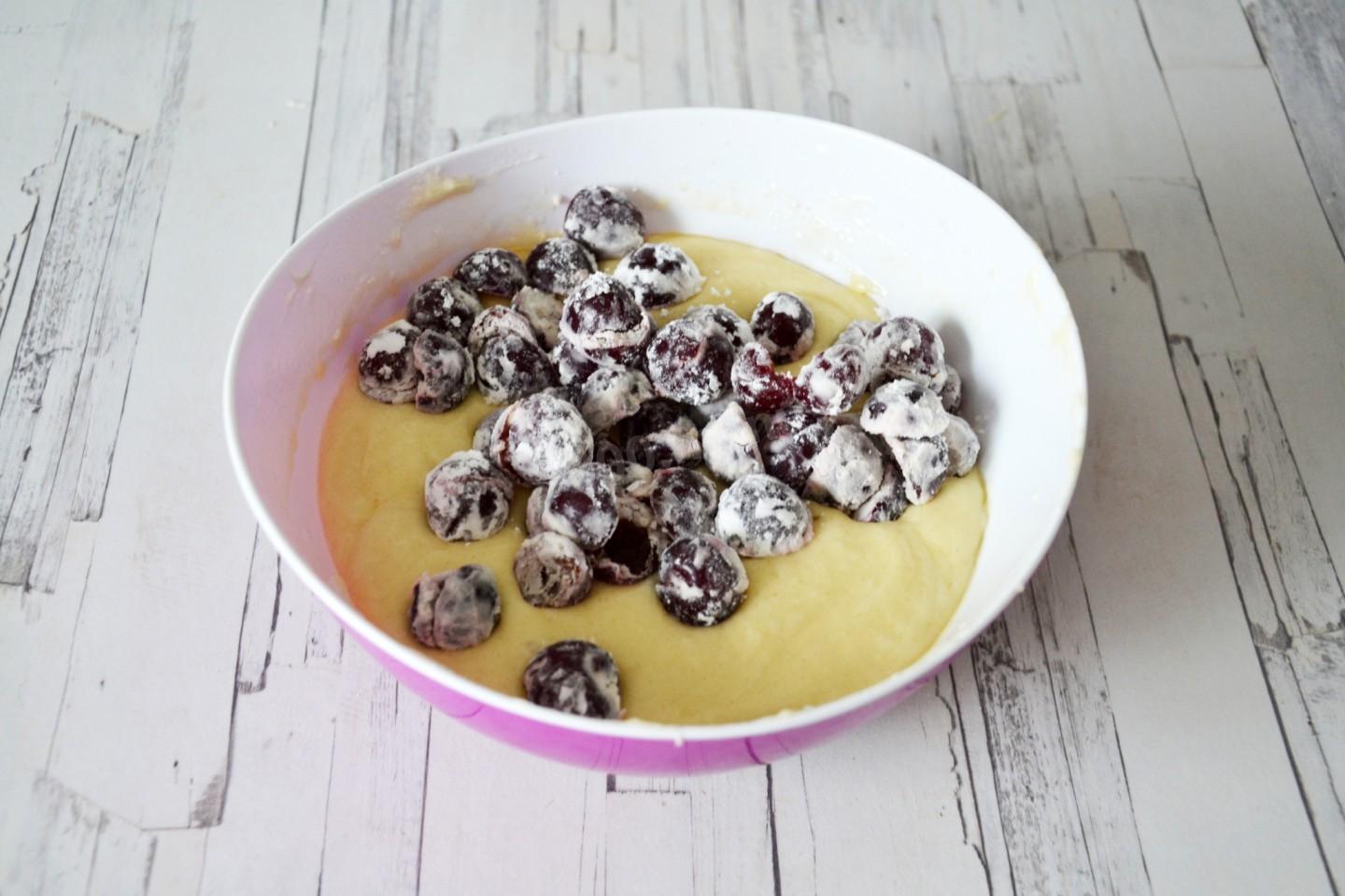 Włóż wiśnie do ciasta. Wszystko wymieszać.