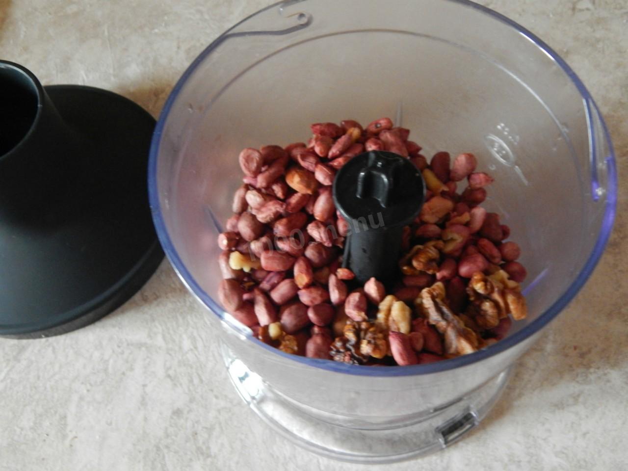 Orzechy można wykorzystać do nadzienia dowolnego, można użyć mieszanki orzecha włoskiego, orzeszków ziemnych i migdałów. Ale powinno być więcej orzechów włoskich, natychmiast odkładamy na bok 22 kawałki połówek orzecha włoskiego, będą one potrzebne do dekoracji baklawy.