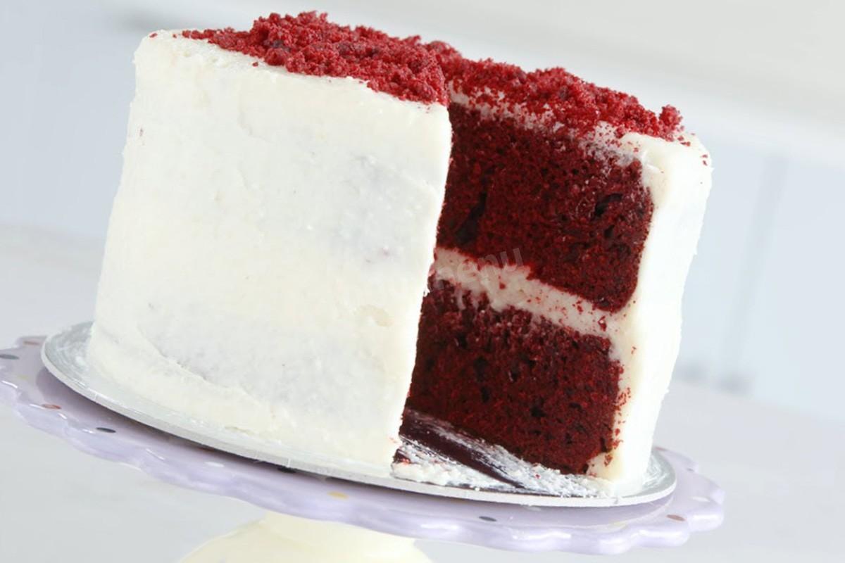 7. Najciekawsze jest złożenie ciasta! To bardzo proste. Posmaruj każde ciasto kremem, połóż na sobie, posmaruj boki. Pozostałe skrawki kruszymy i dekorujemy nimi wierzch ciasta.