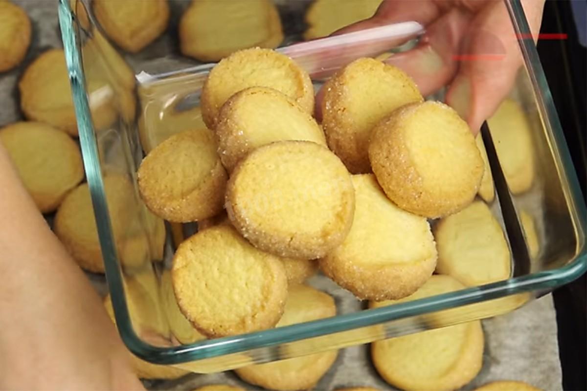 4. Rozwałkuj kiełbasę o średnicy około 3 cm z ciasta, zwiń ją w pozostały cukier, pokrój w plastry o grubości 0,7-1 cm, połóż ciasteczka na blasze do pieczenia (najlepiej z pergaminem, chociaż ciasteczka są tłuste i nie przyklejają się, a pergamin został usunięty, wyrzucony, a blacha do pieczenia jest prawie czysta).