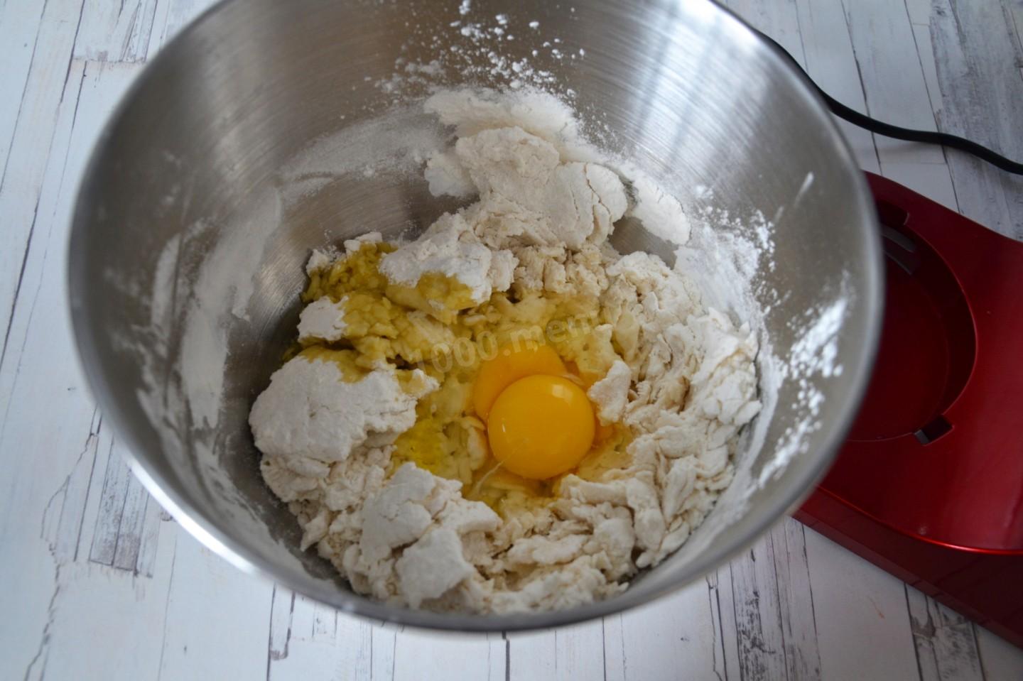 Zagnieść twarde ciasto. Dodaj jajka i oliwę z oliwek. Kontynuuj wyrabianie ciasta, aż przestanie przyklejać się do rąk.