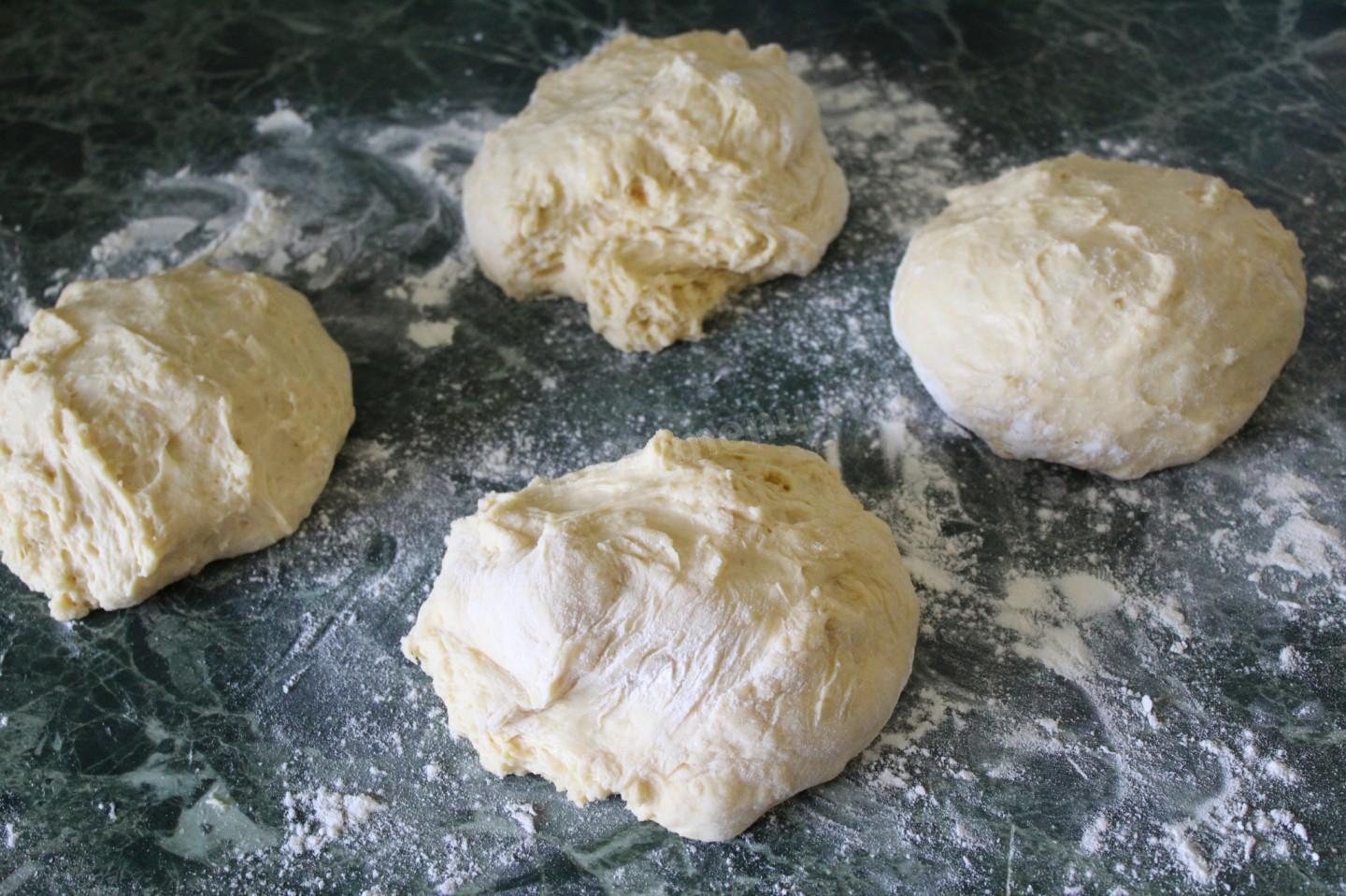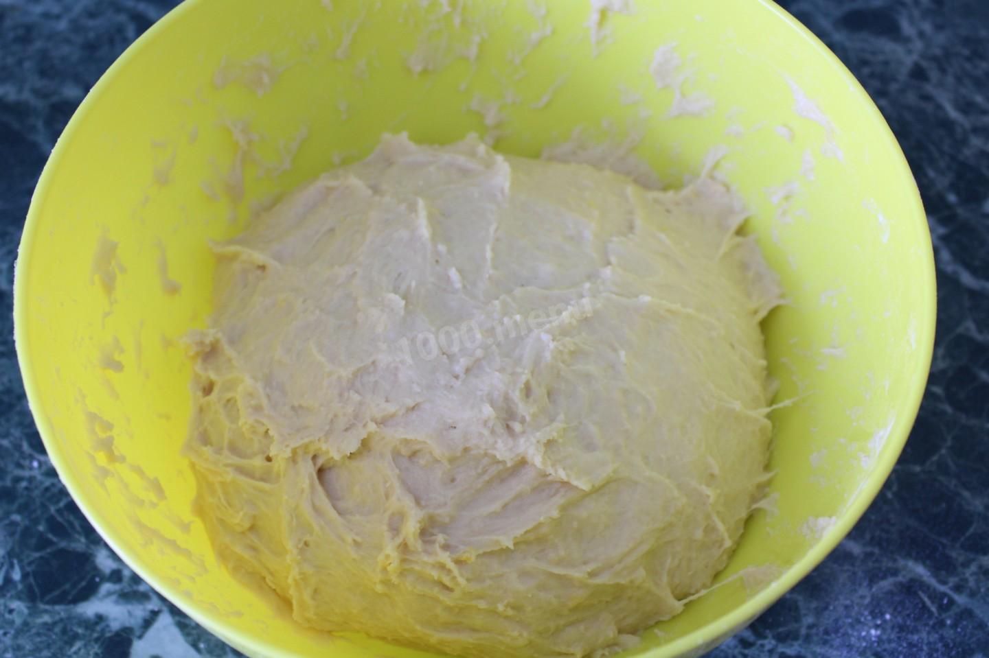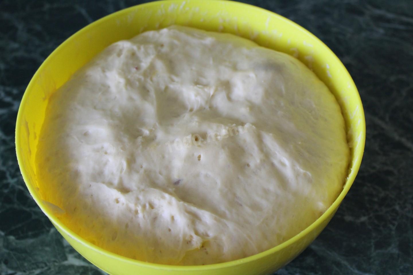 Zagnieść ciasto. Możesz zagnieść ciasto rękami i mikserem. Ugniataj rękami przez co najmniej 10 minut.Zaokrąglamy ciasto, posypujemy mąką, przykrywamy ręcznikiem lub pokrywką i umieszczamy na stojaku w ciepłym miejscu.