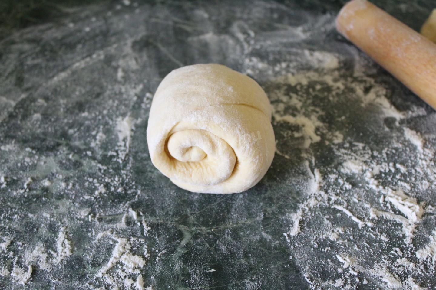 Następnie bułkę należy spłaszczyć na całej długości i ponownie zwinąć w rolkę – otrzymasz taki wałek ciasta, który można zaokrąglić i ułożyć na wysmarowanej tłuszczem blasze do pieczenia – otrzymasz bochenek chleba lub bochenek chleba.
