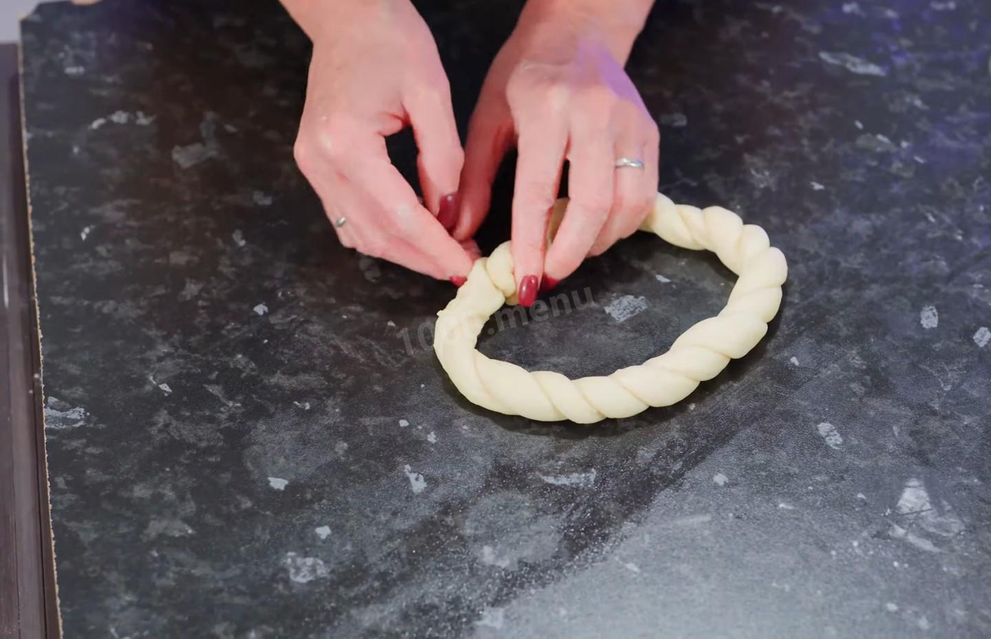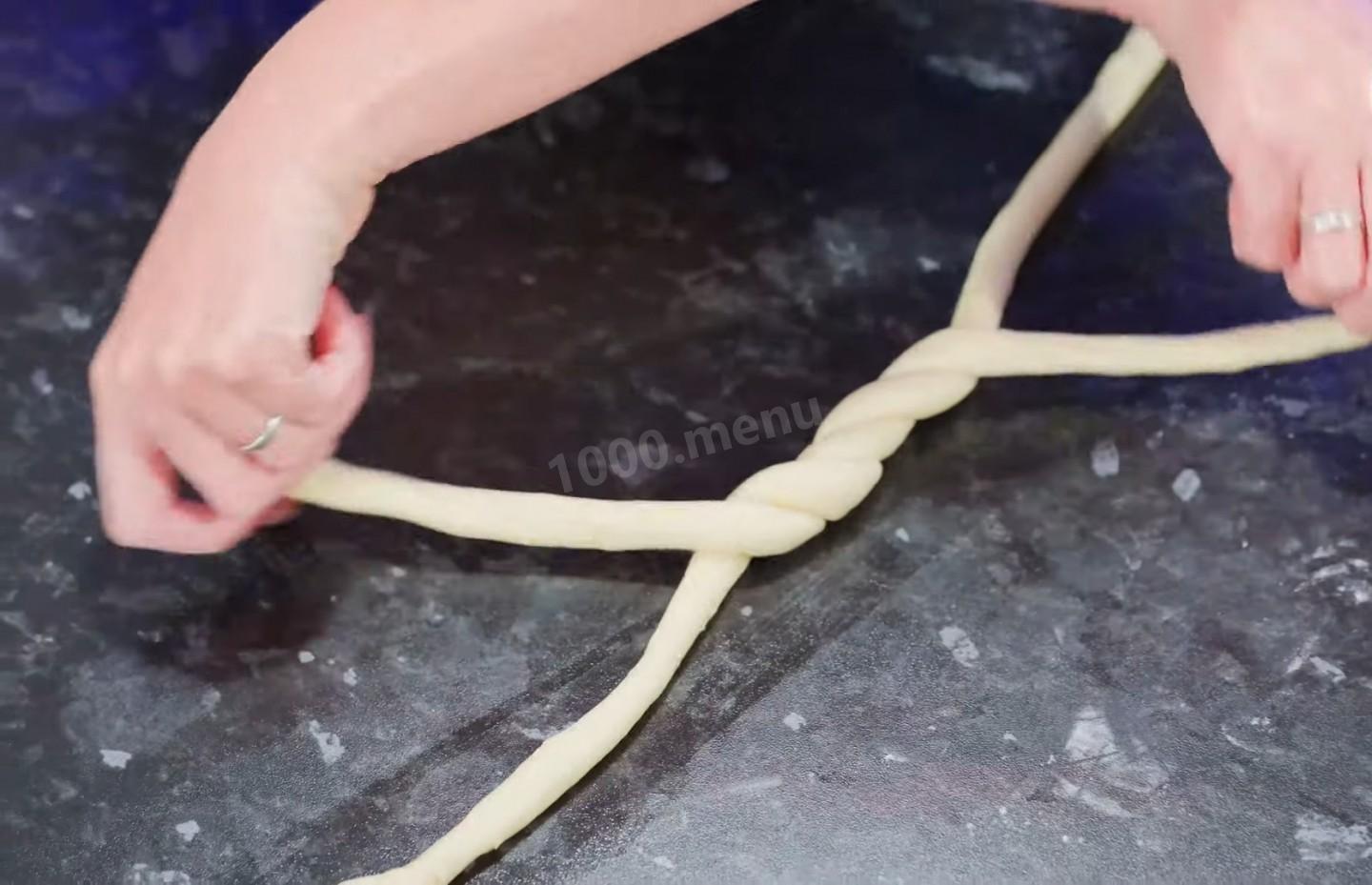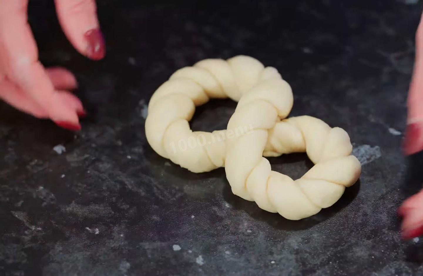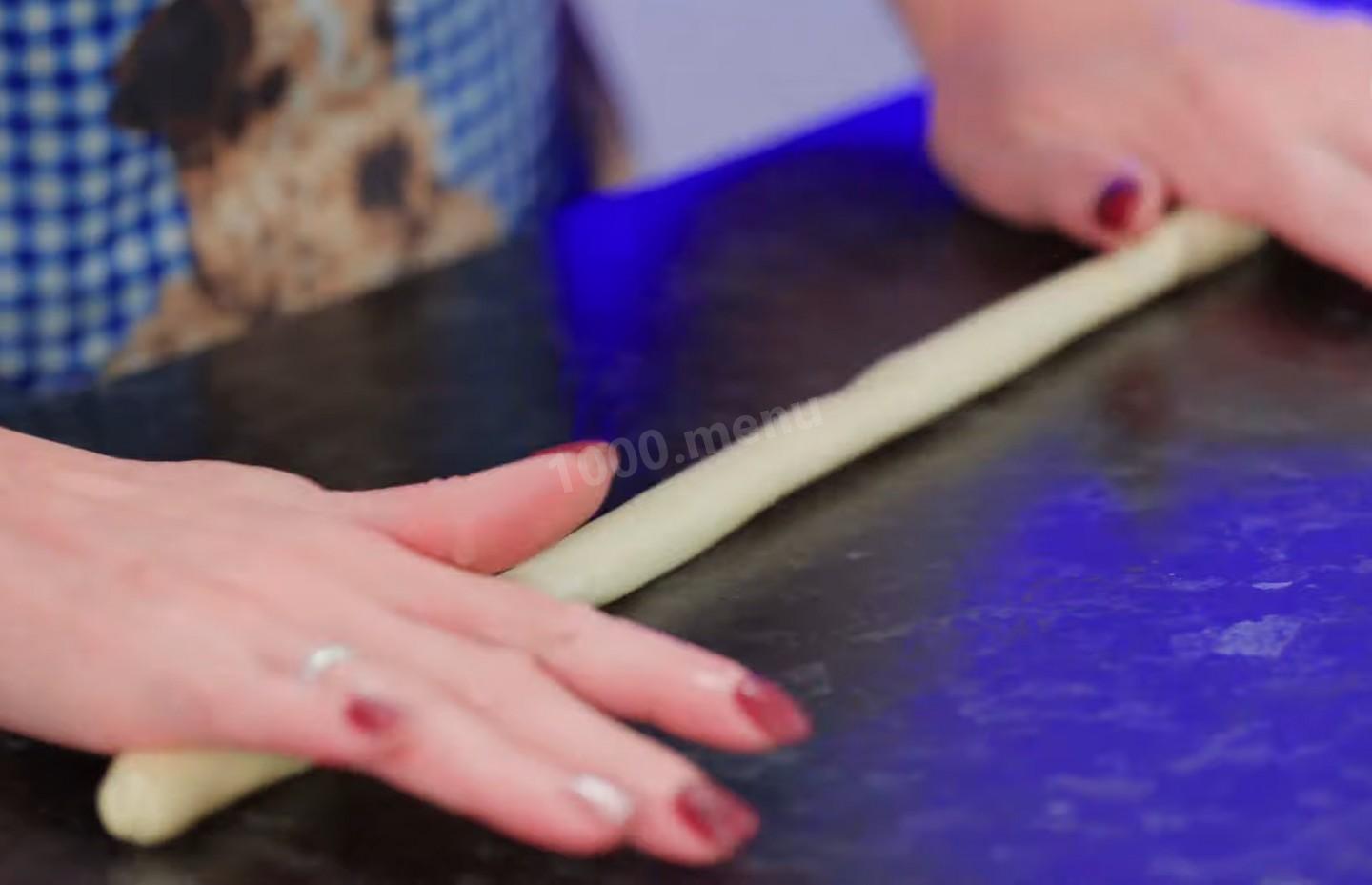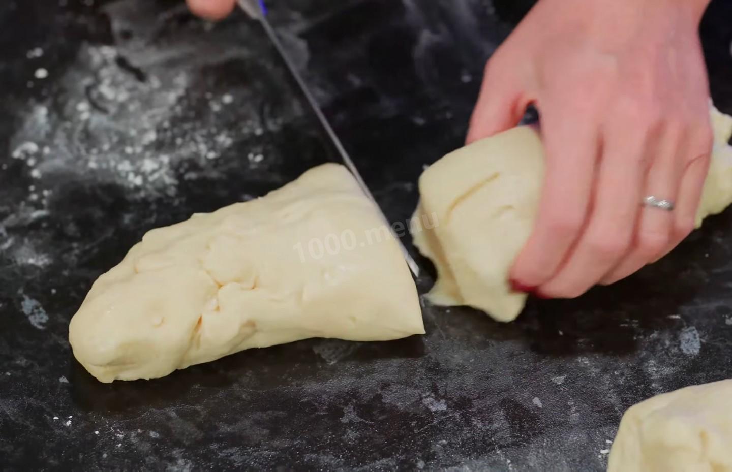 Rozłóż dobrze wyrośnięte ciasto na stole i ugniataj, a następnie pokrój ciasto na czternaście identycznych części.