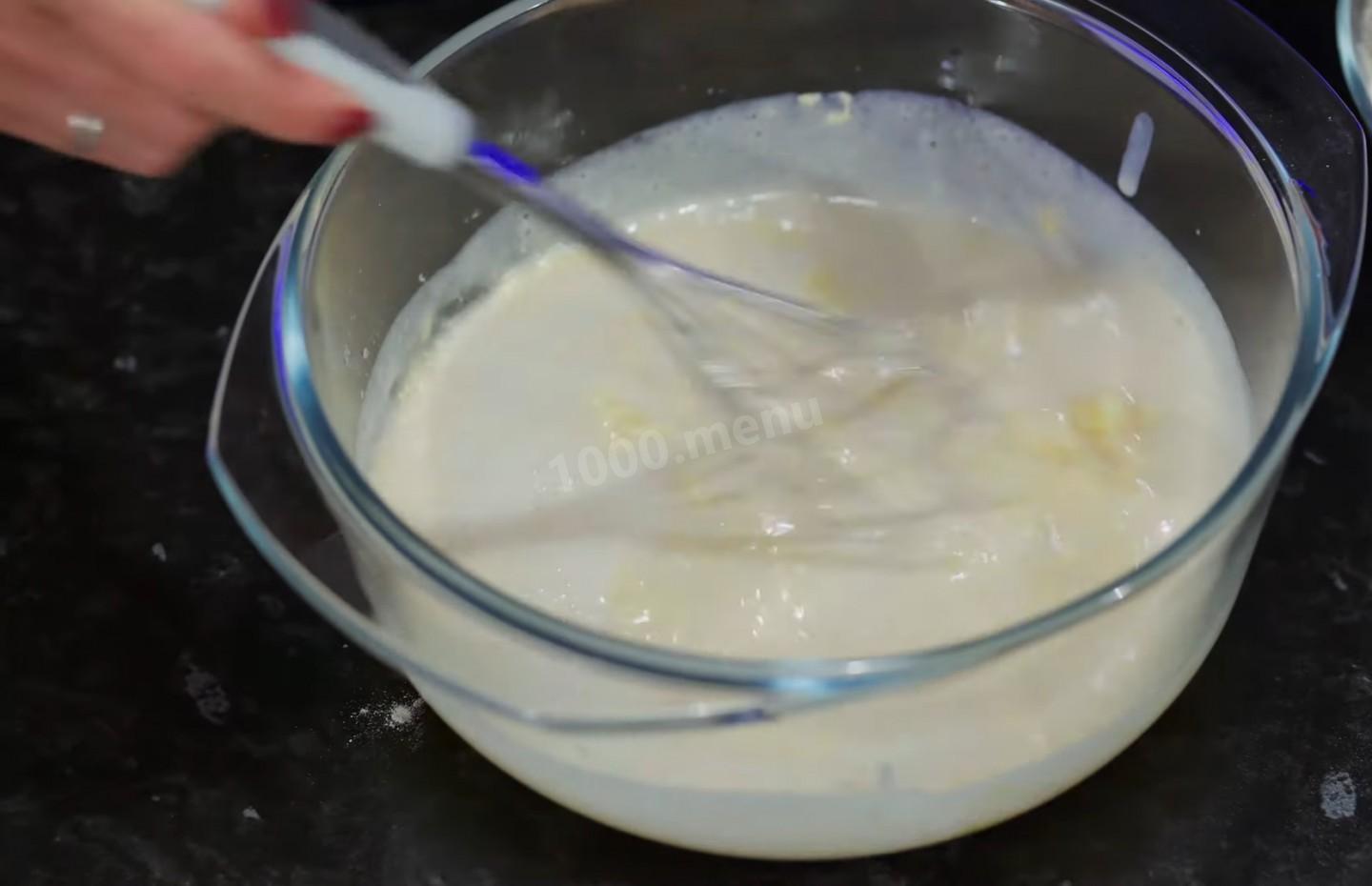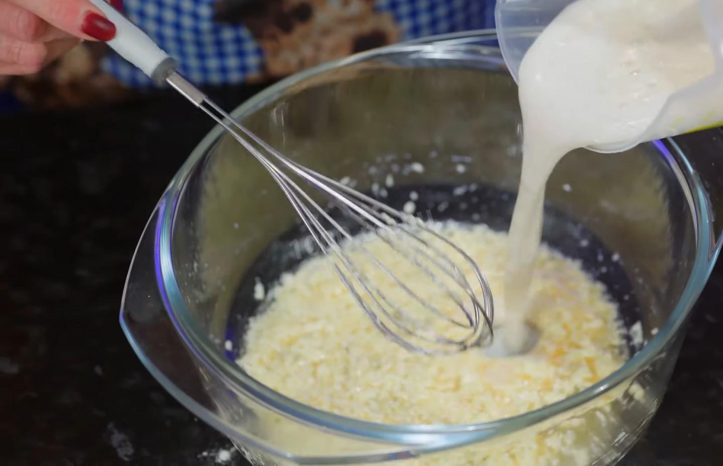 Wlej aktywowane drożdże do miski z bazą jajeczno-maślaną.