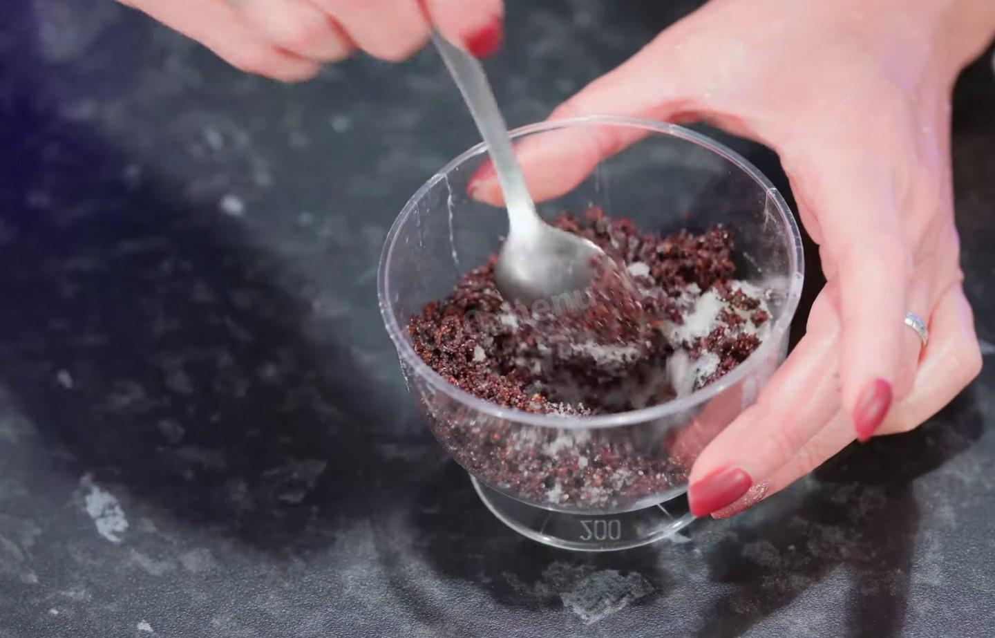 Aby przygotować posypkę, wymieszaj jedną łyżkę gotowanego na parze maku spożywczego z jedną łyżką cukru.