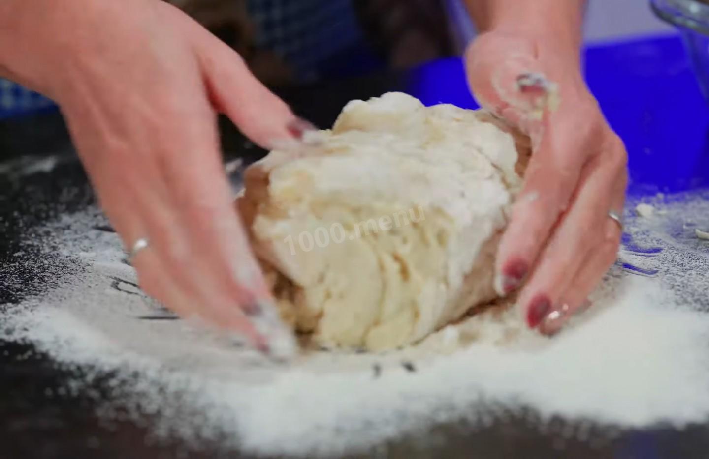 Wlej trochę mąki na stół i rozłóż ciasto, które następnie dobrze zagniatamy.