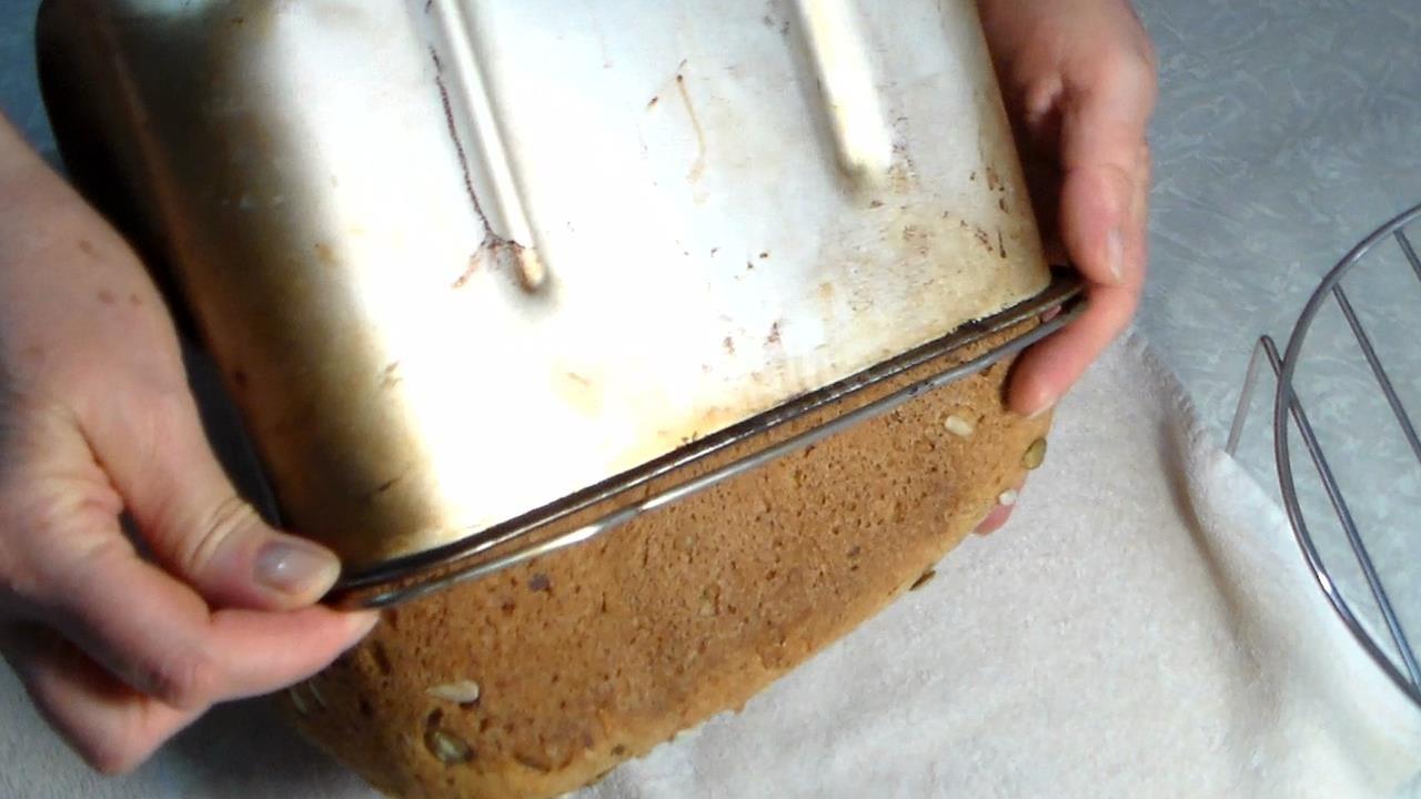 Gotowy chleb z nasionami lnu, słonecznika i dyni wyjmuję z piekarnika, odstawiam na 2-3 minuty.