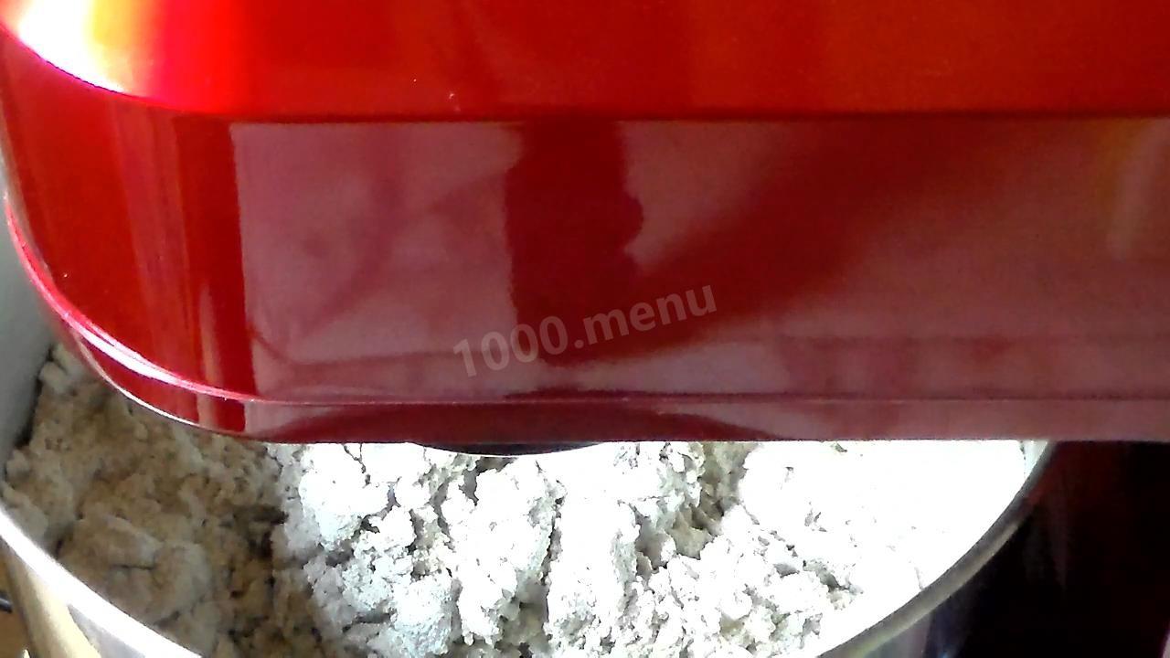 Dodaj cukier, drożdże, ponownie dodaj część mąki. Dodaj nasiona i dodaj pozostałą mąkę.