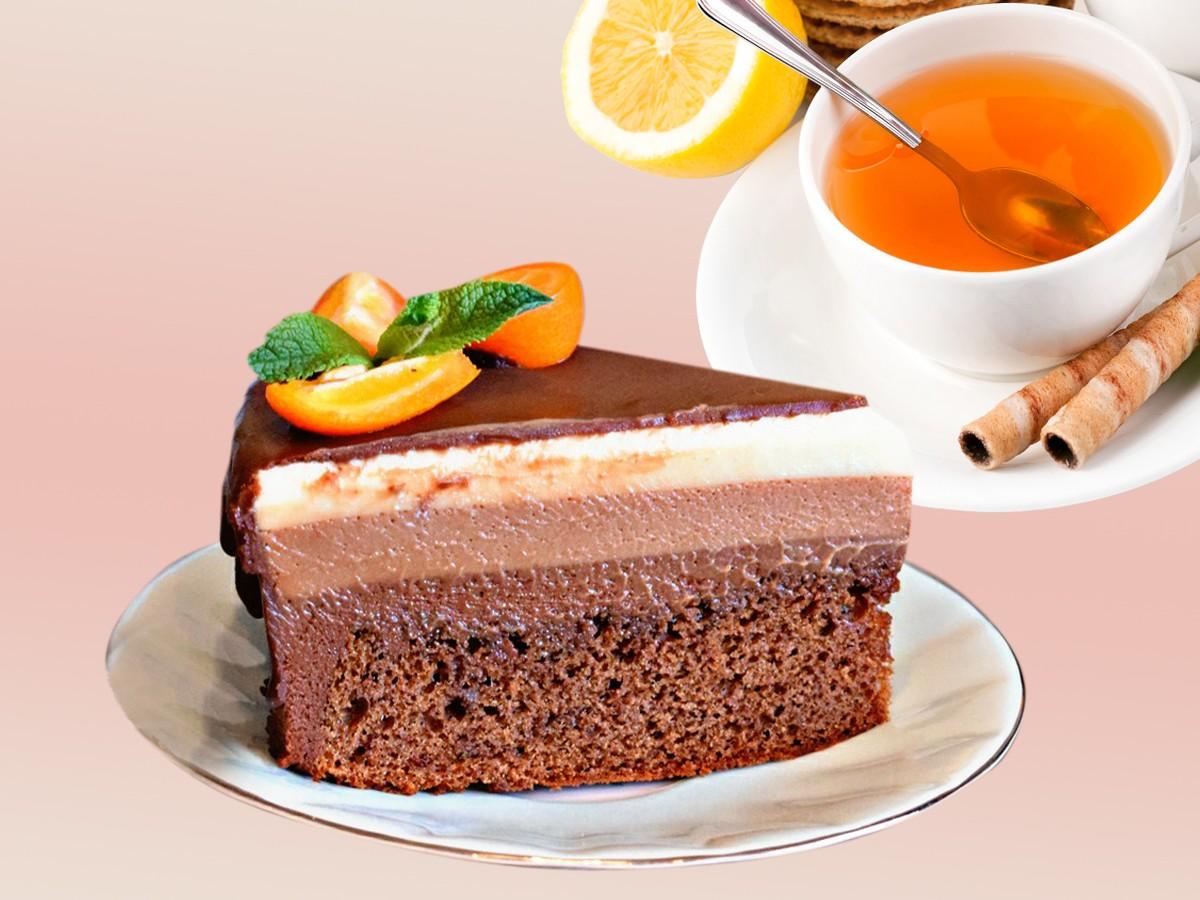 4. Rozłóż biszkopt w formie. Posyp brandy i zalej musem z gorzką czekoladą. Wkładamy do lodówki, aby zestalić żelatynę. Kolejną warstwą ciasta jest mus z mlecznej czekolady, wysyłamy również do lodówki w celu zestalenia. I ostatnia, górna warstwa to mus z białej czekolady. Pozostaw w lodówce na kilka godzin. Posyp ciasto do dekoracji proszkiem kakaowym.