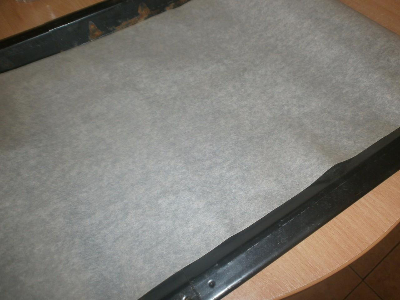 Mamy dużo czasu i powoli zapalamy piekarnik...Bierzemy blachę do pieczenia i pokrywamy papierem do pieczenia lub pergaminem.Na moje 150 gramów suszarek potrzebowałem blachy do pieczenia o wymiarach około 29 na 43 cm-to są pomiary wewnętrzne.
