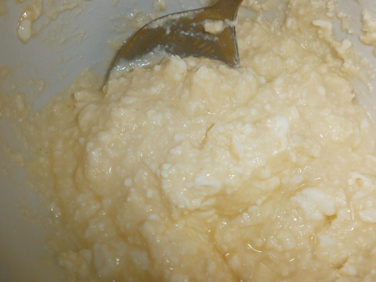 Następnie-twarożek, cukier granulowany i jajko dobrze wymieszaj, aż będą gładkie.