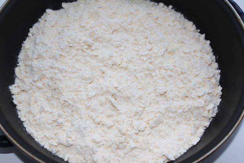 margarynę zetrzyj na grubej tarce i wymieszaj z mąką. Mielimy w dłoniach jak zad.