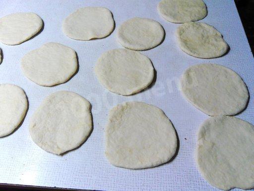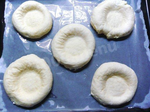 I umieść nadzienie na środku naszych kółek, ściśnij krawędzie, rozłóż serniki szwem w dół.